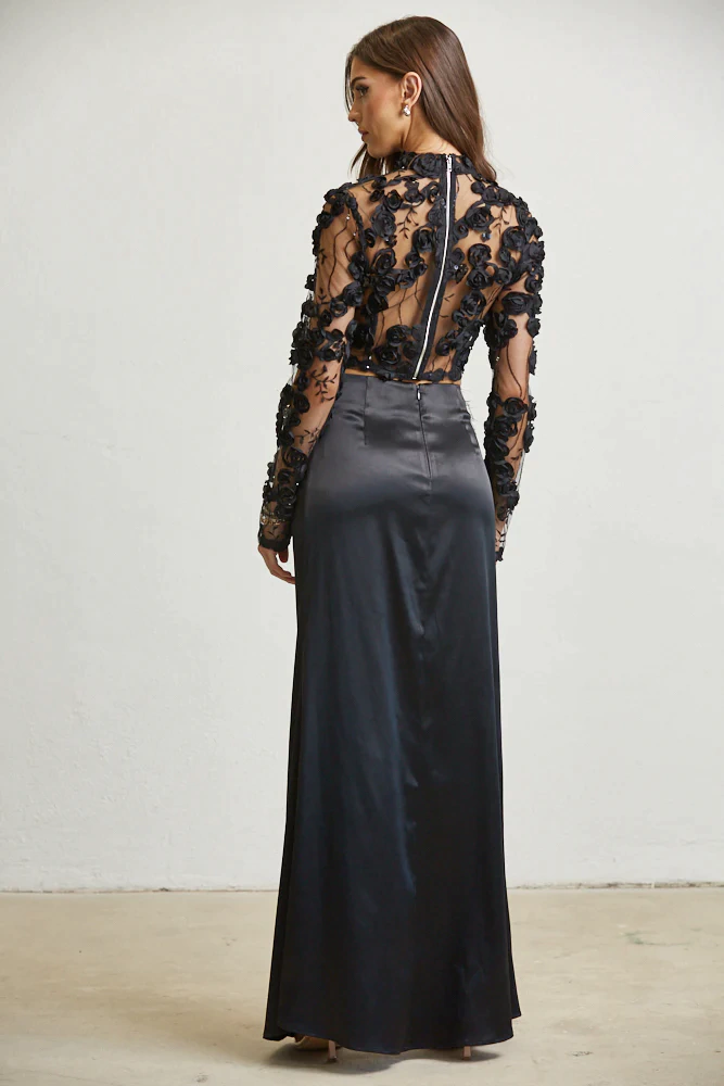 • ROSETA + TOP DE MALLA BORDADO CON LENTEJUELAS